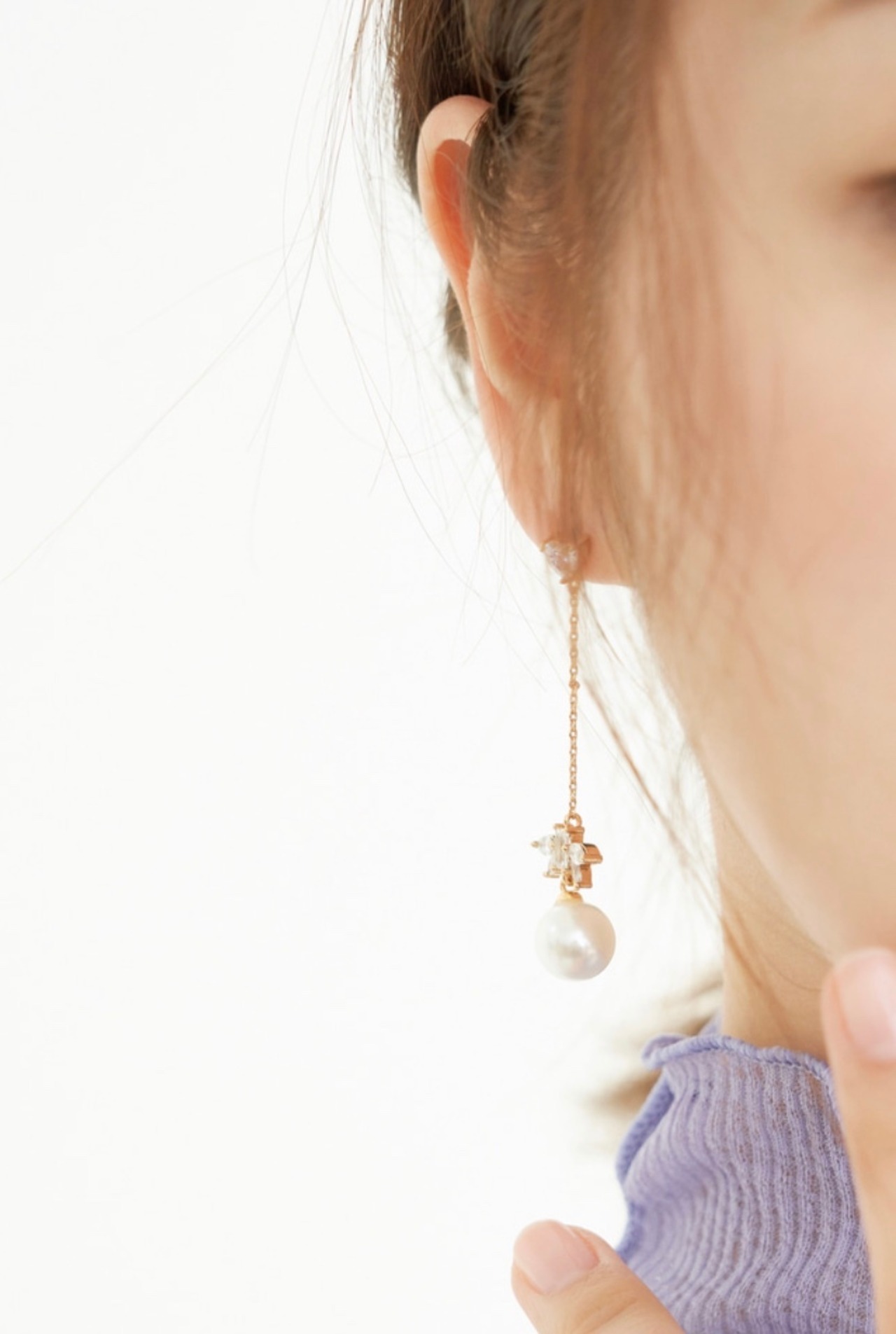 パールが揺れる繊細で可愛らしいデートにぴったりなピアスです♡